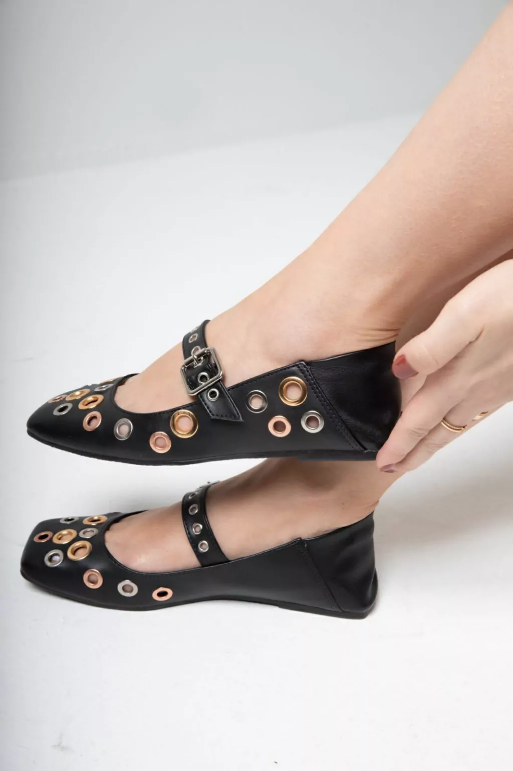 A sapatilha voltou pra ficar em nossos closets, desde looks mais clássicos e românticos ha composições mais pesadas e urbanas, o Sofia trás elos em três banhos,facilitando a combinação com outros acessórios.